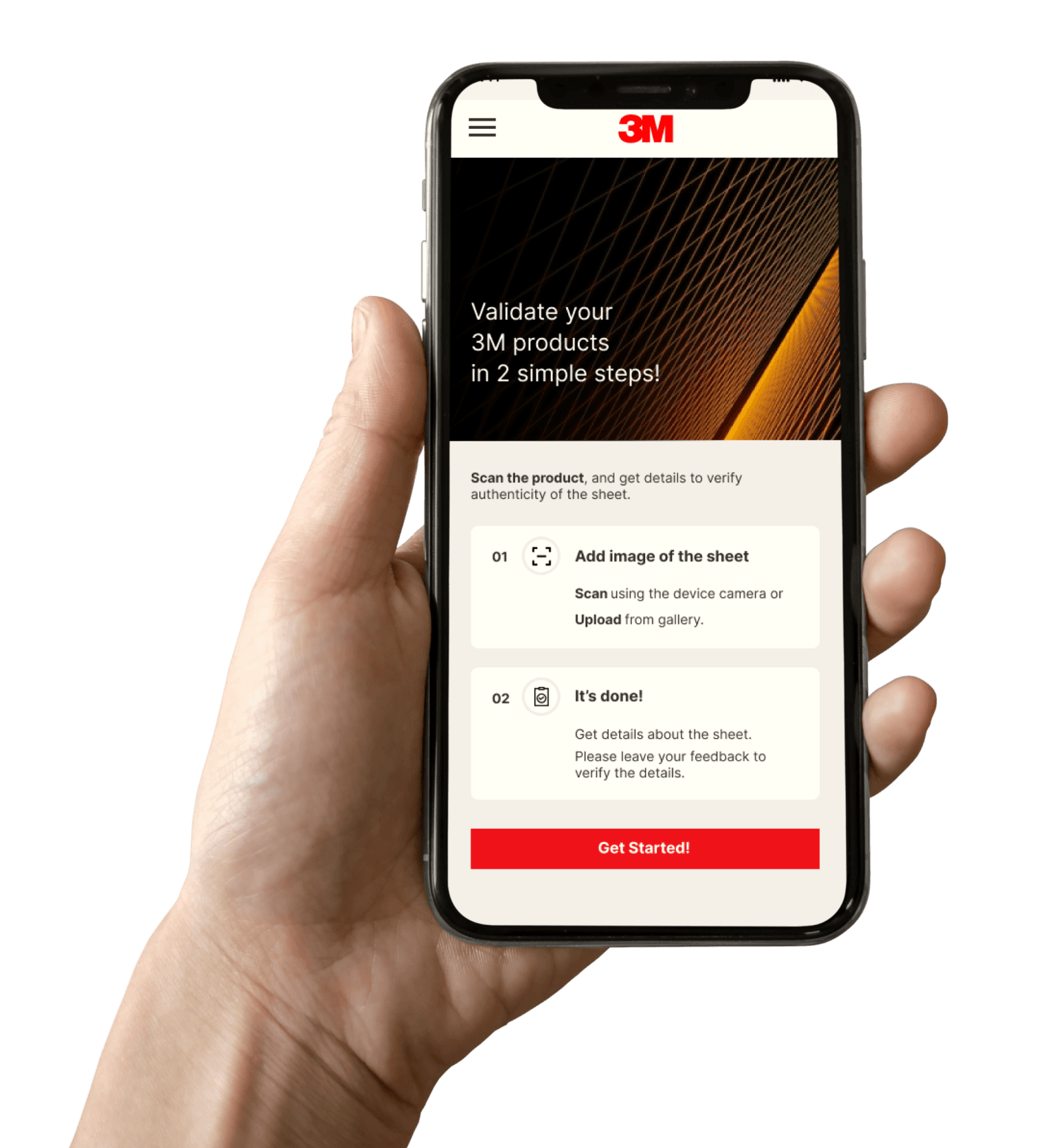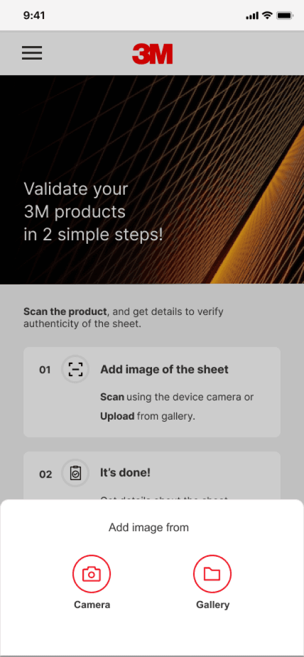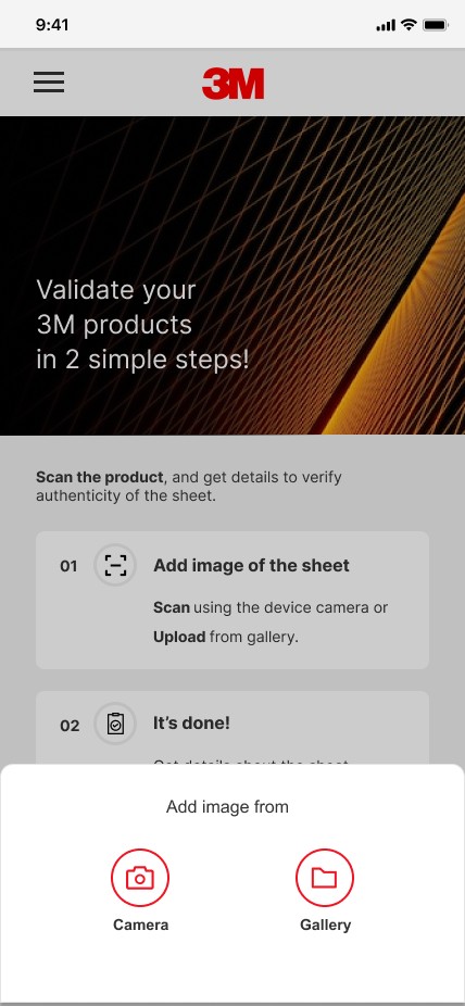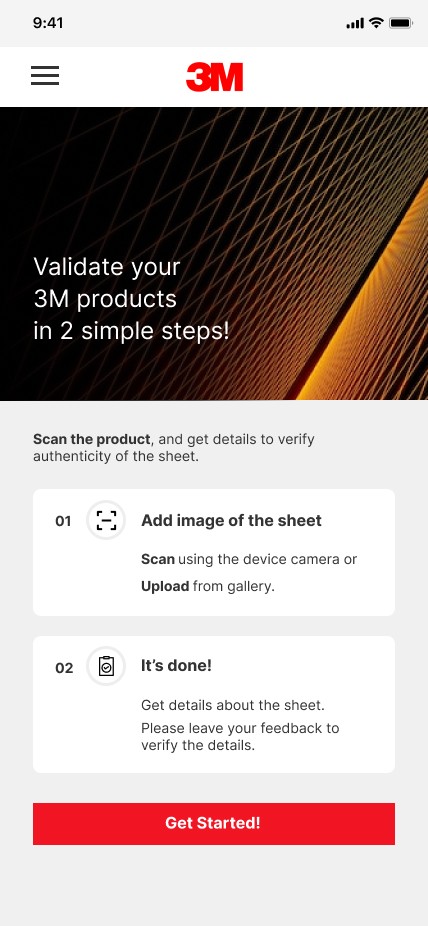How might we design a mobile application that enables 3M field technicians to seamlessly scan, authenticate, and instantly access comprehensive details of genuine 3M sheet materials while operating in the field. The focus was on aligning the UI with 3M's brand guidelines.
