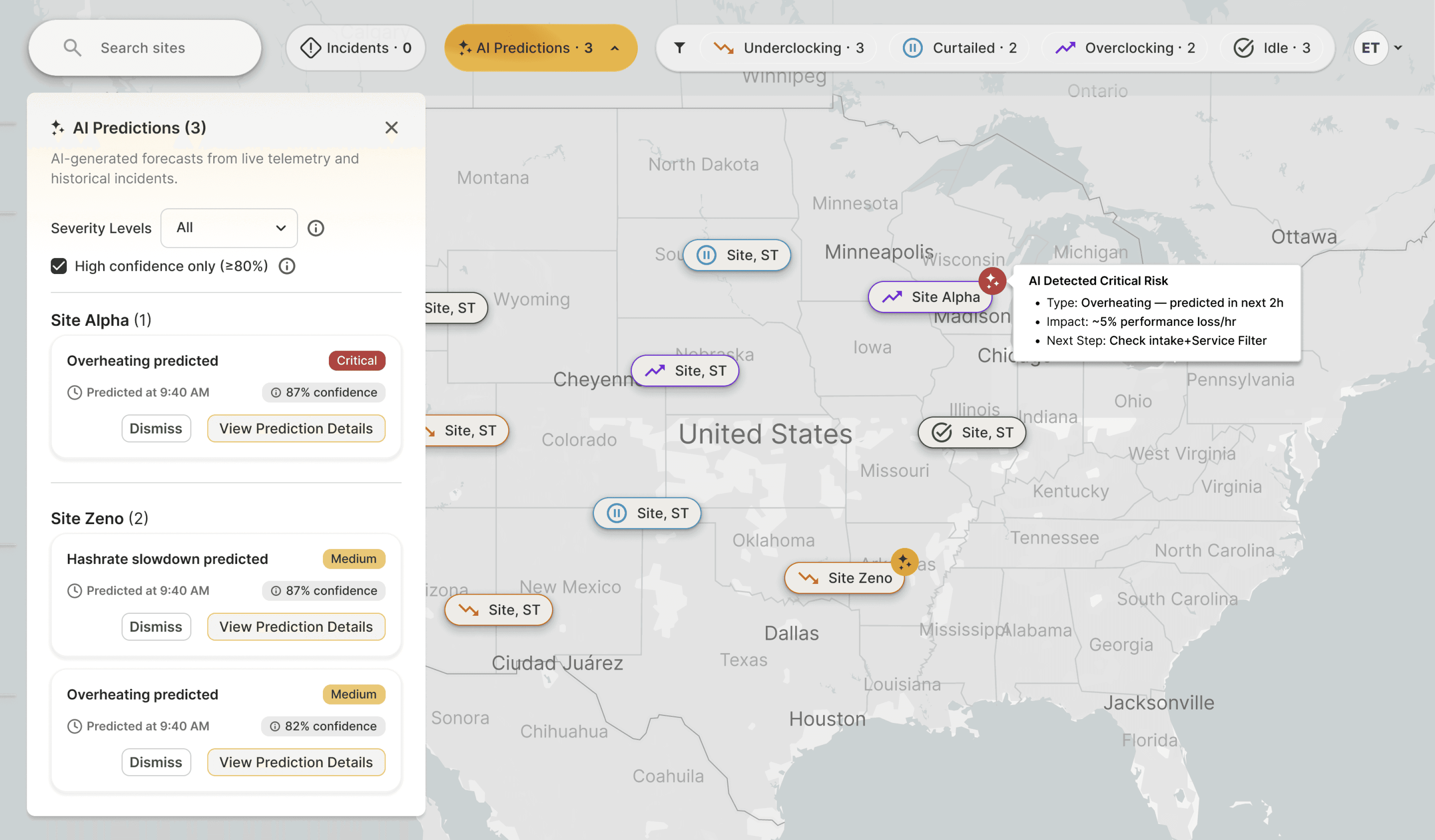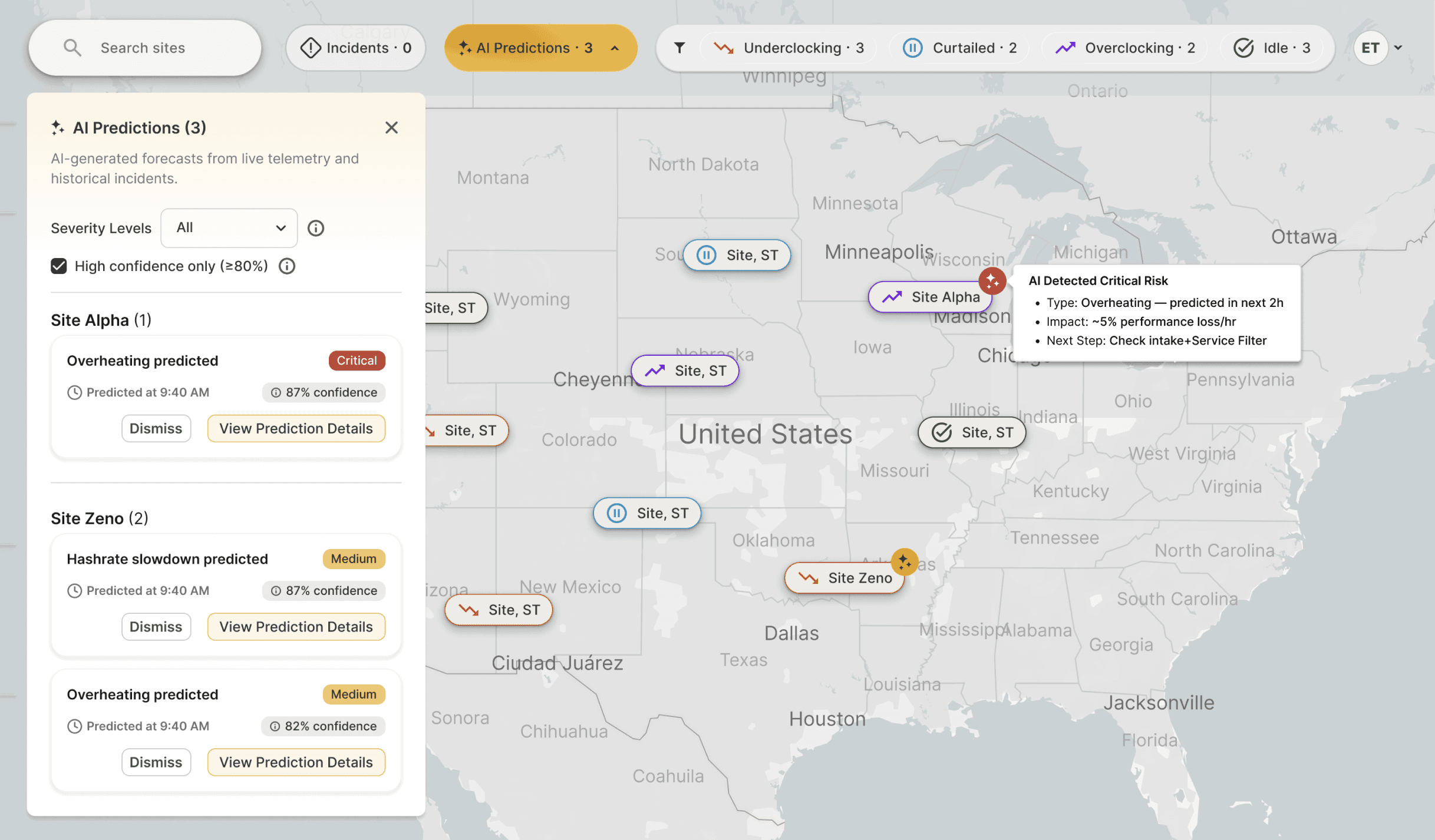 • Surface anomalies early with sparkle-badged site chips and list views.