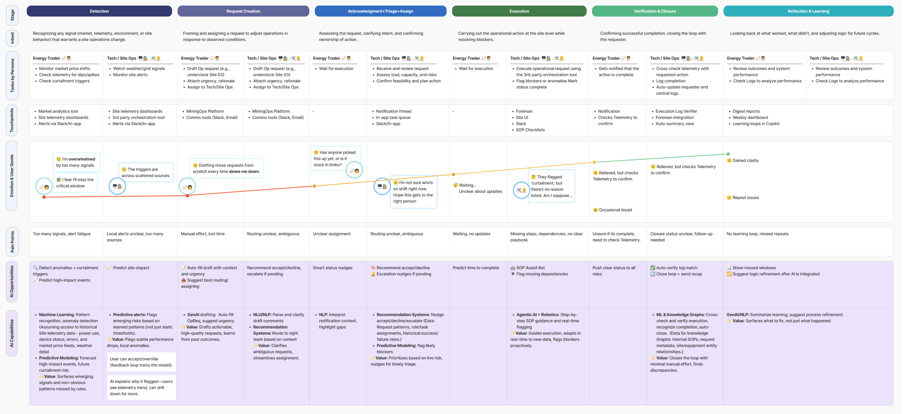 The journey revealed signal gaps, manual revalidation loops, and fragmented execution clarity—showing where AI could close the loop with prediction, explainability, and automation.